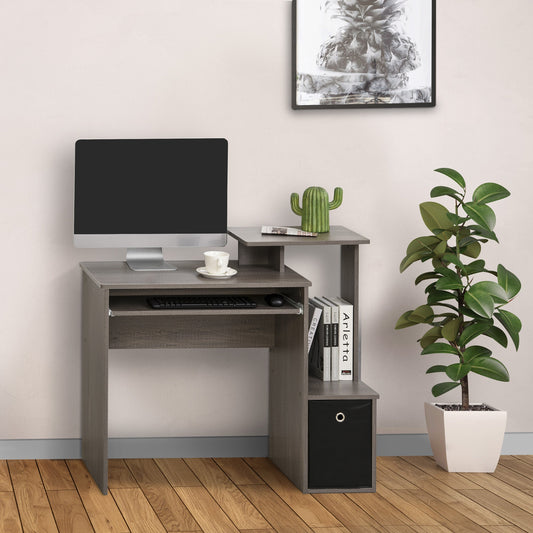 Compact Small Computer PC Desk with Sliding Keyboard Tray Storage Drawer Shelf Home Office Workstation Working Gaming Study Grey