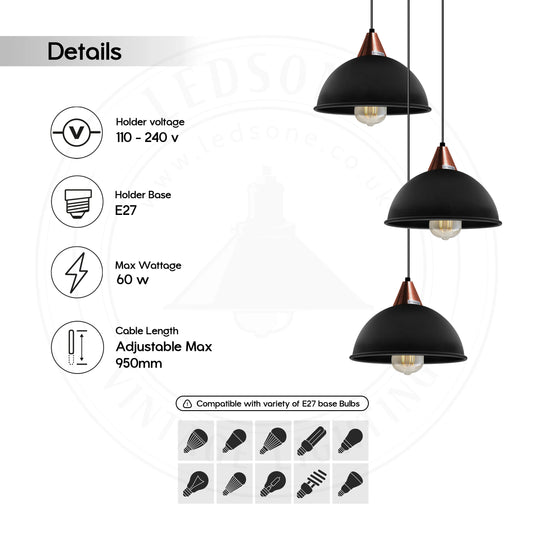 3 Head Dome Ceiling Pendant Light