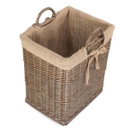 Wicker Grey Wash Round Hessian Lined Log Basket